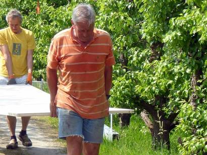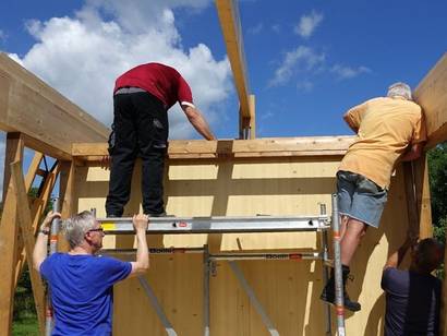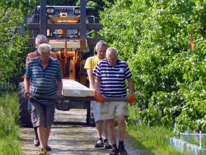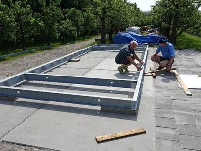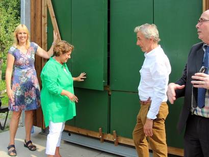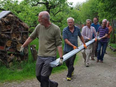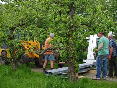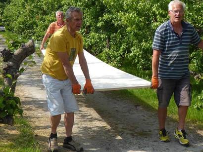 De eerste bouwpakketten van de werkplaats/winkel werden 15 mei 2017 afgeleverd. Op 25 augustus 2017 was de bouwploeg nagenoeg klaar en kon wethouder Vugs ons nieuwe onderkomen officieel openen.