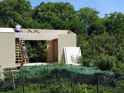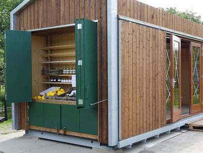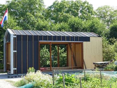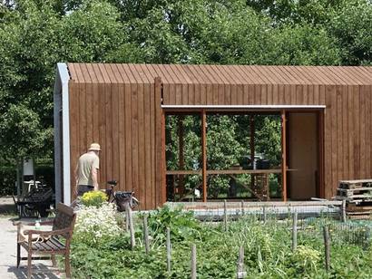 De werkplaats is gebouwd als een verhuisbare stadsboerderij. Ontwerp werkplaats (3,1 MB)
