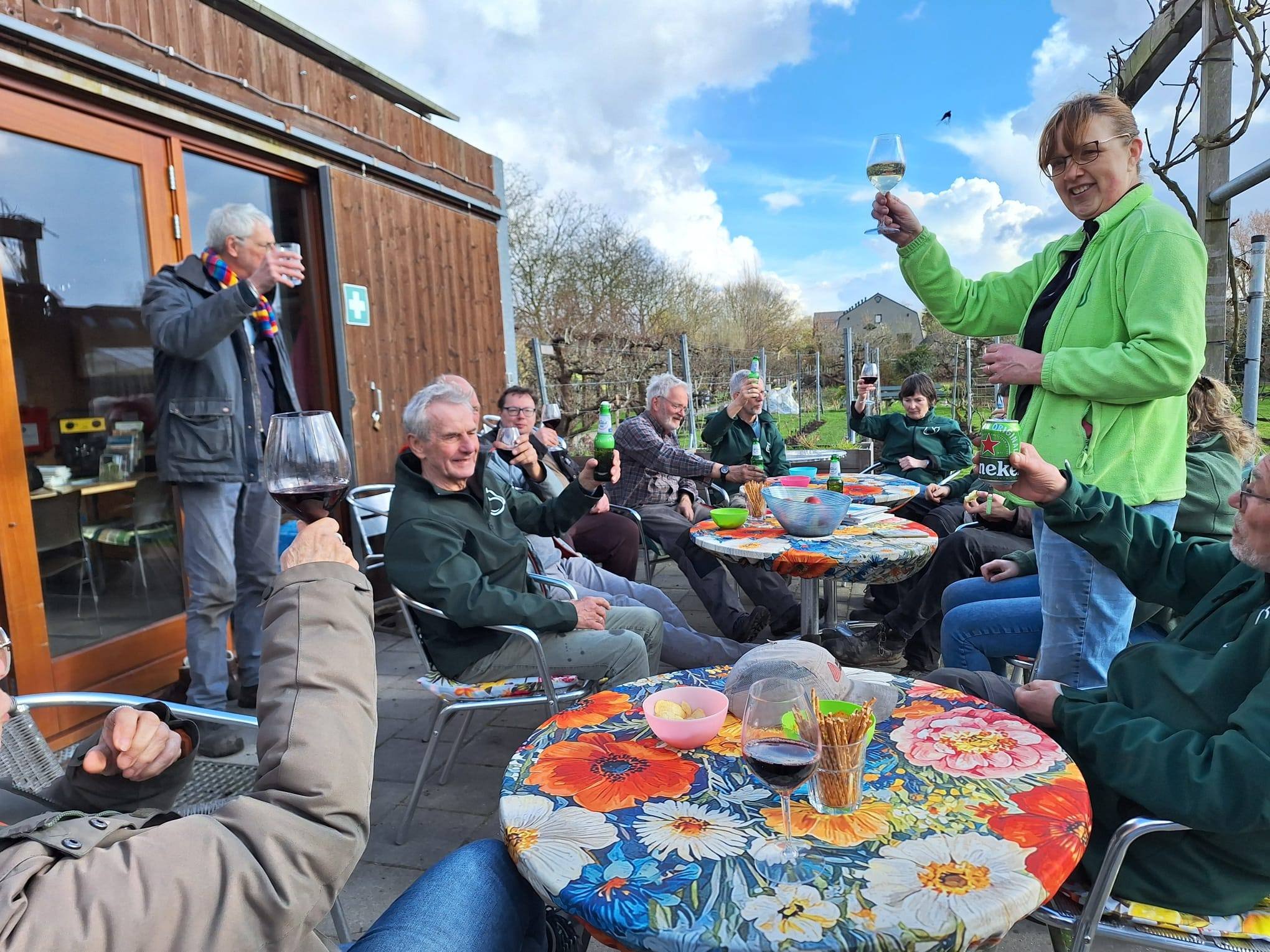 Wat hadden we geluk met het weer! Dankzij de hulp van vele vrijwilligers hebben we alle klussen kunnen klaren. De enorme berg compost (30 kuub!! ) is weg. We kregen hulp van de leerlingen van De Berkrode uit Berkel en Rodenrijs. Alle 600 perenbomen, het aardbeienveld, de kas de moestuin, de stiltetuin. De wijngaard, allemaal kregen ze een heerlijk vers kruiwagentje compost. Er gebeurde nog veel meer: zo kregen ook de kippen vers zand, een bloementuin werd aangelegd en het blotevoetenpad werd opgeknapt etc. En natuurlijk werden de harde werkers beloond met een heerlijke lunch!